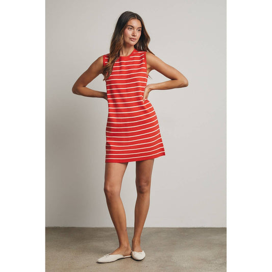 Striped Mini Sweater Tank Dress - Poppy/Off White