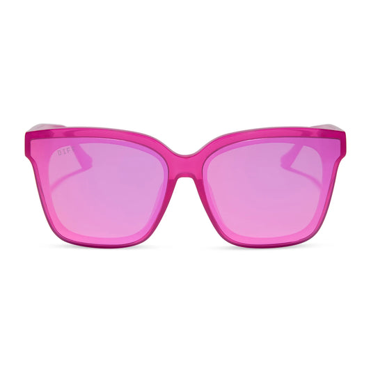 DIFF Eyewear - Meredith II - Bright Tulip Pink Mirror Sunglasses