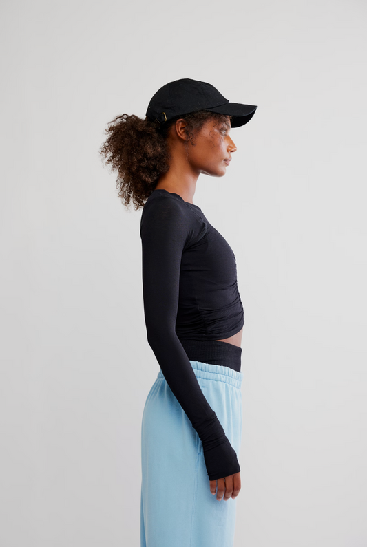 Free People Tempo Ruched Long Sleeve Shirt - Black