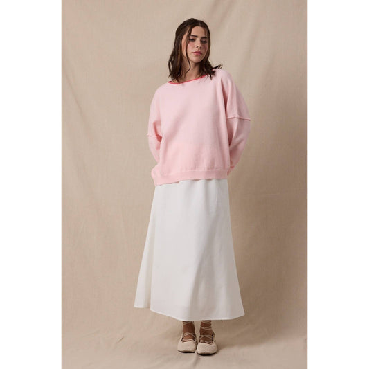 Basic Drop Shoulder Sweater - Petal Pink