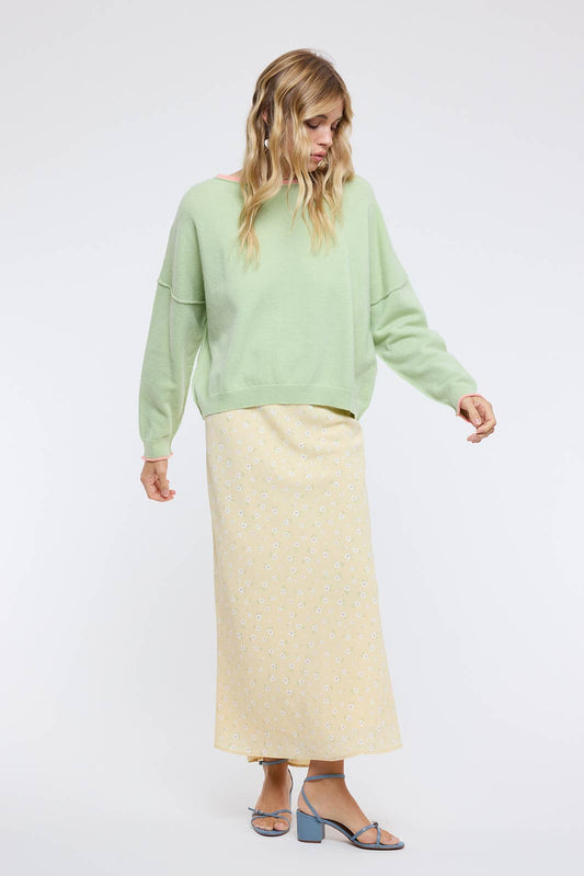 Brushed Contrast Boat Neck Sweater - Matcha/Melon