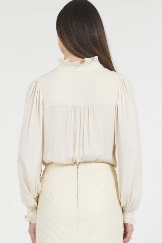 Split V-Neck Blouse with Ruffle Trim - Cream