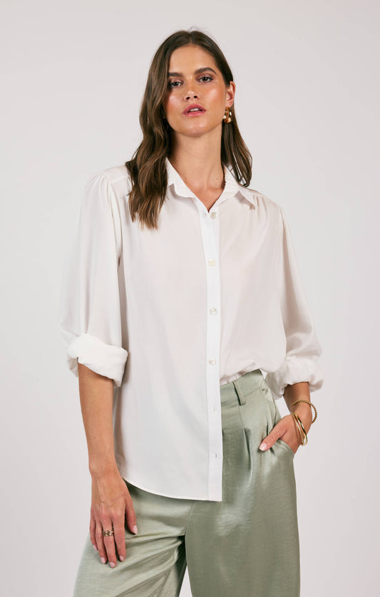 Stillness Yoked Splitcuff Buttondown Shirt - White