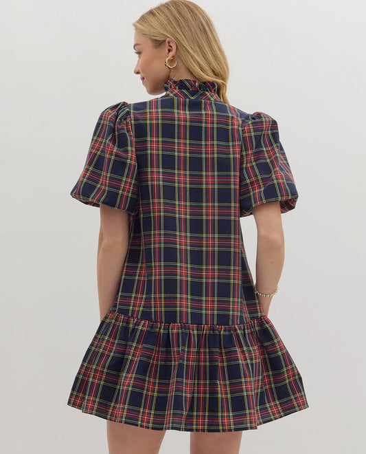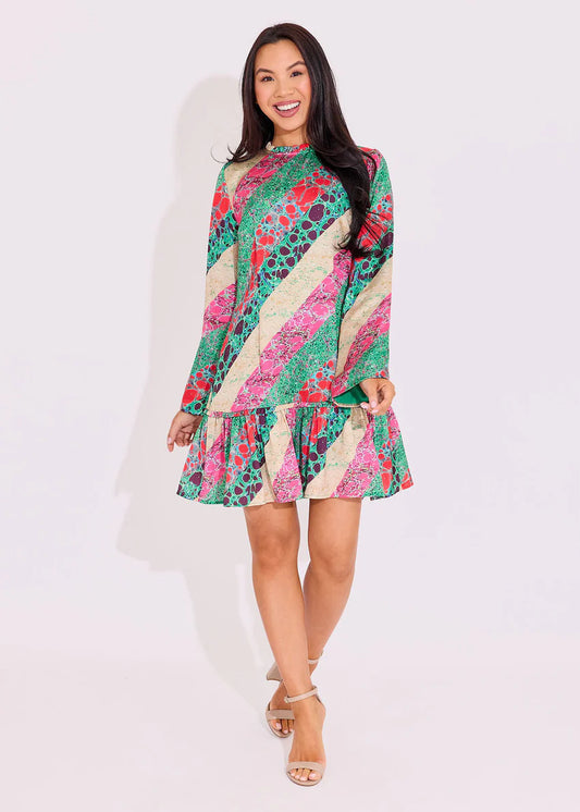 Printed 3/4 Sleeve Mini Dress - Ecru/Rust