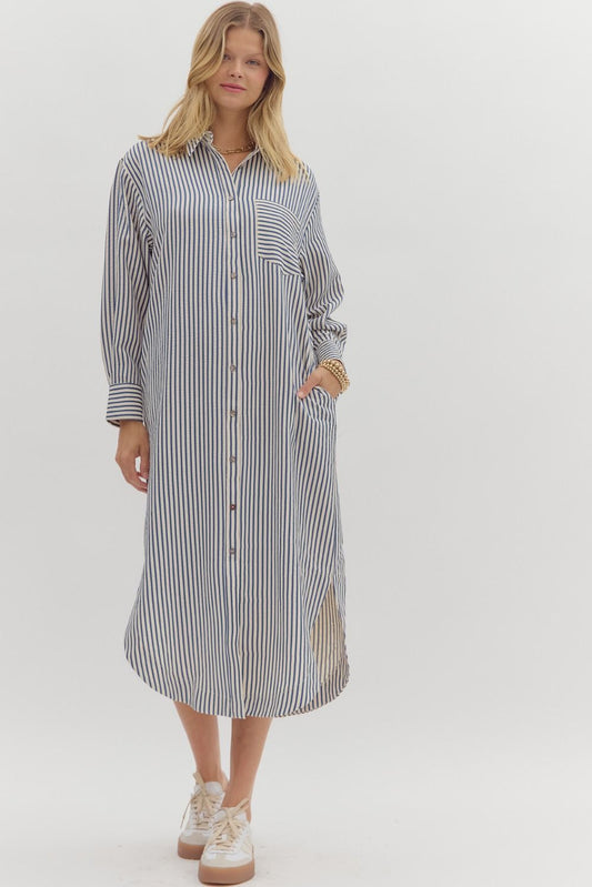 Stripe Long Sleeve Midi Shirt Dress - Indigo