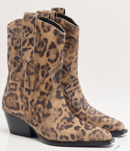 Free People Cat Nap Cowboy Boots - Leopard Suede
