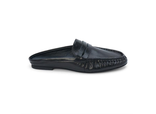 Porta Leather Penny Loafer Mules - Black