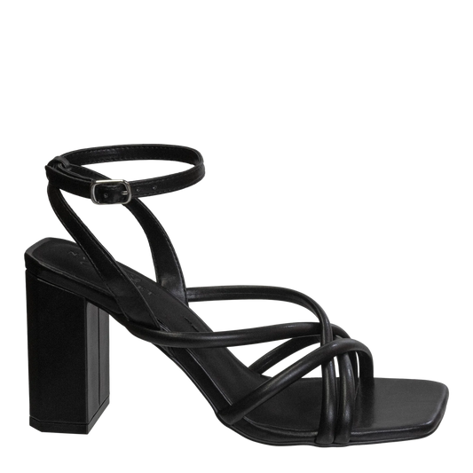 Beatrix Heeled Sandal - Black Crinkle Patent Leather