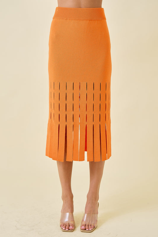 Sweater Midi Skirt with Fringe Hem - Sunkist