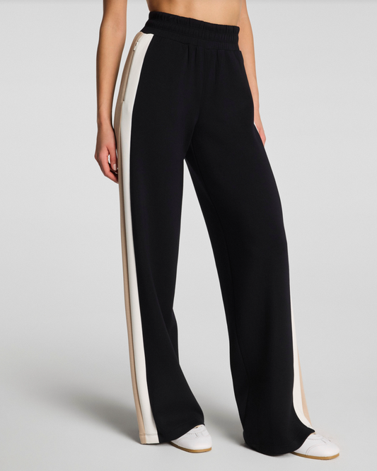 Spanx AirEssentials Colorblock Track Pant - Very Black Dune Powder
