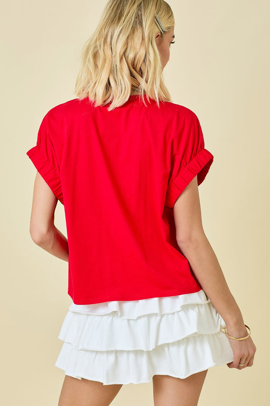 Easy Oversized Top With Elastic Sleeve Detail - Red