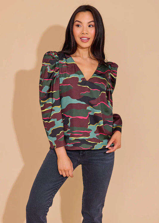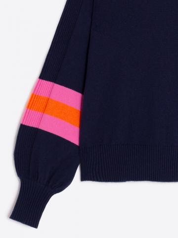Balloon Sleeve Sweater - Navy/Pink/Orange
