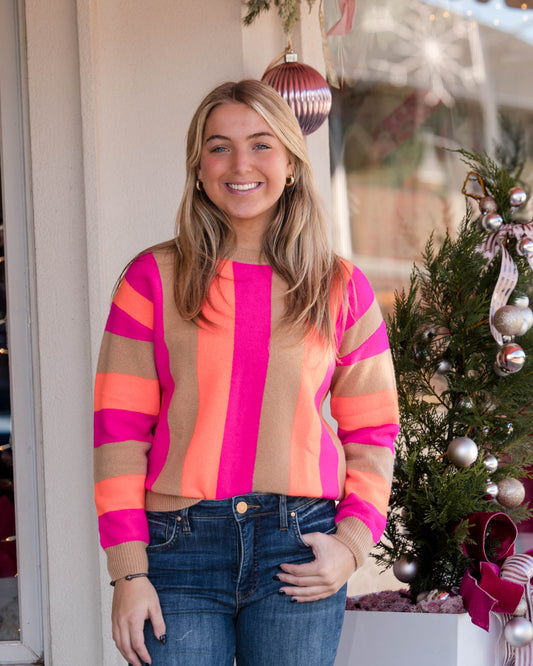 Fabiola Vertical Stripes Sweater - Beige/Orange/Pink