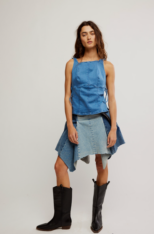 Free People Not My Fault Corset Top - Denim Baby Blue