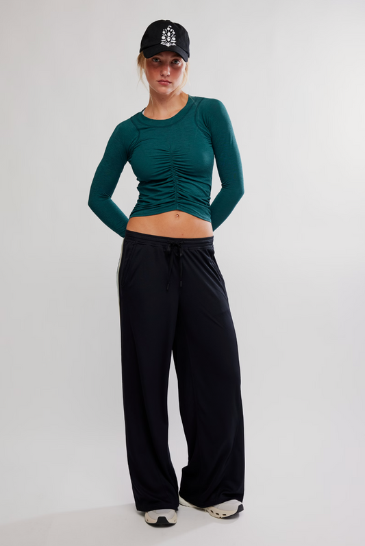 Free People Tempo Ruched Long Sleeve Shirt - Evergreen