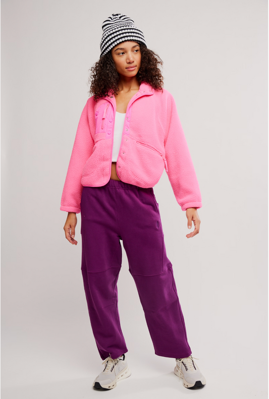 Free People Tempo Ruched Long Sleeve Shirt - Fuchsia Flirt