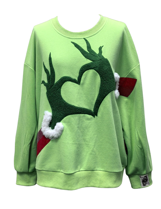 Queen of Sparkles Green Grinch Heart Hands Sweatshirt