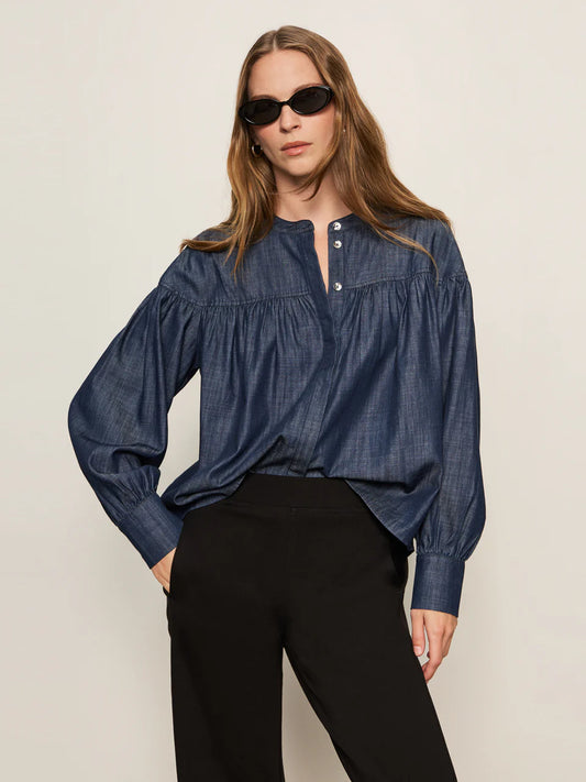 Draped Sleeveless Mockneck Top - Mother of Pearl