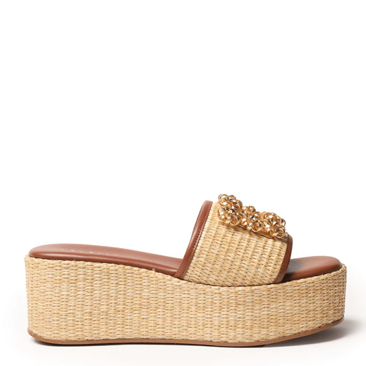 Sam Edelman Darla Multi Buckle Slide Sandal - Bleached Beechwood Faux Raffia