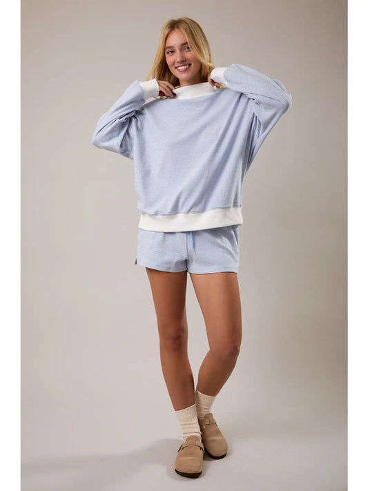 Striped Terry Lounge Sweat Shorts - Navy/Blue