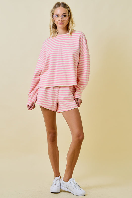 Striped Terry Lounge Sweat Shorts - Pink/Cream