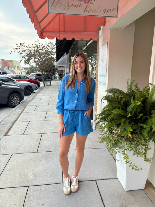 Solid Linen Short - Blue Regatta