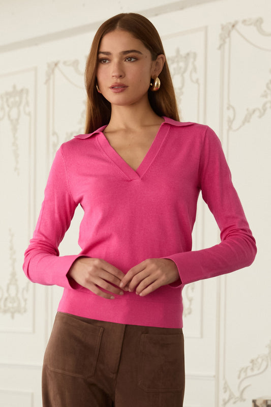 Long Sleeve Polo Knit Top - Dark Chocolate