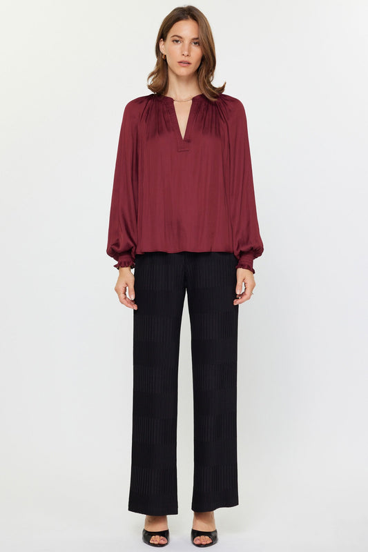Long Sleeve V-Neck Blouse - Burgundy