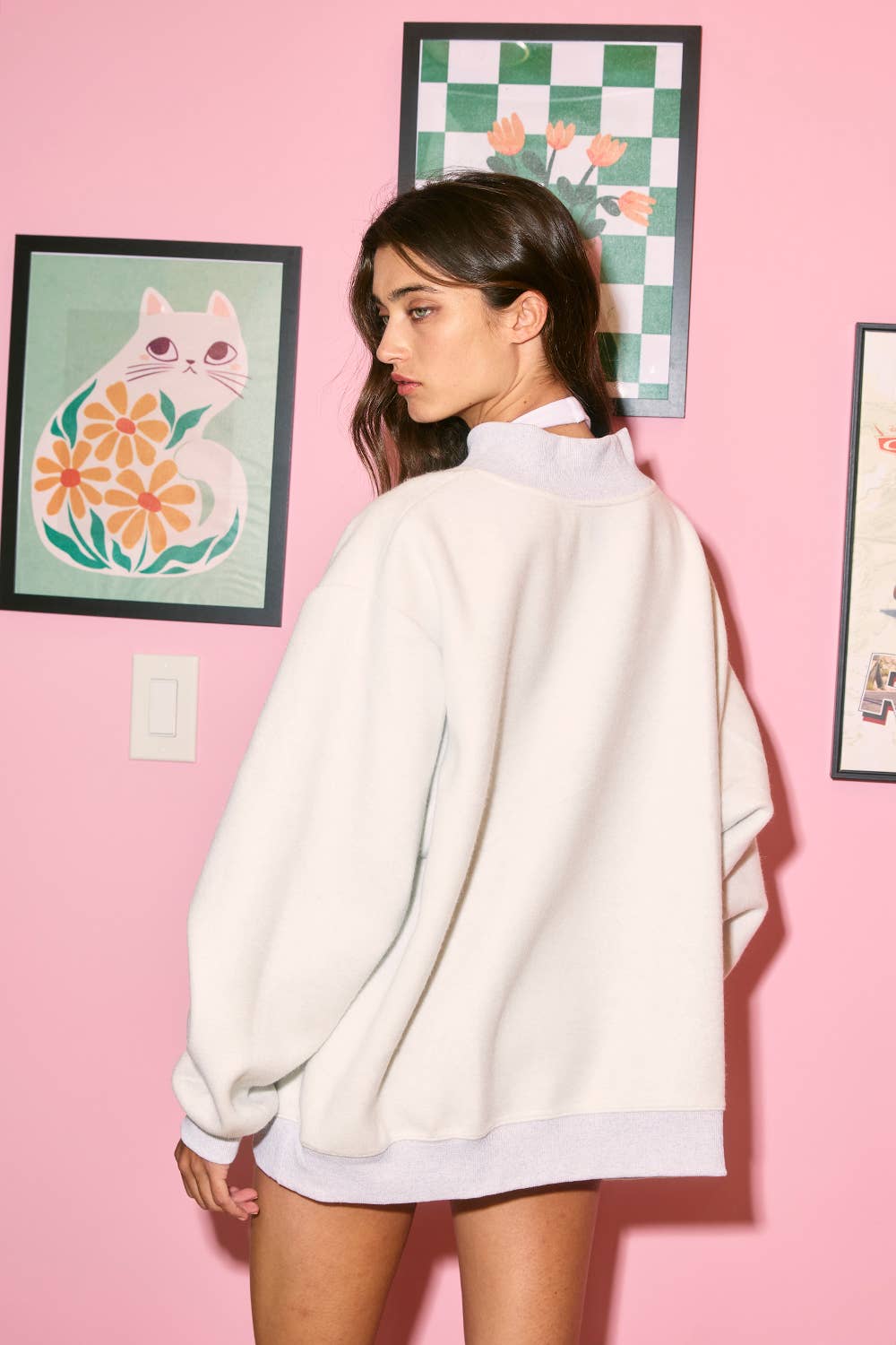 'WAR DAMN & TIGERS' Print Reversible Mock Neck Sweatshirt