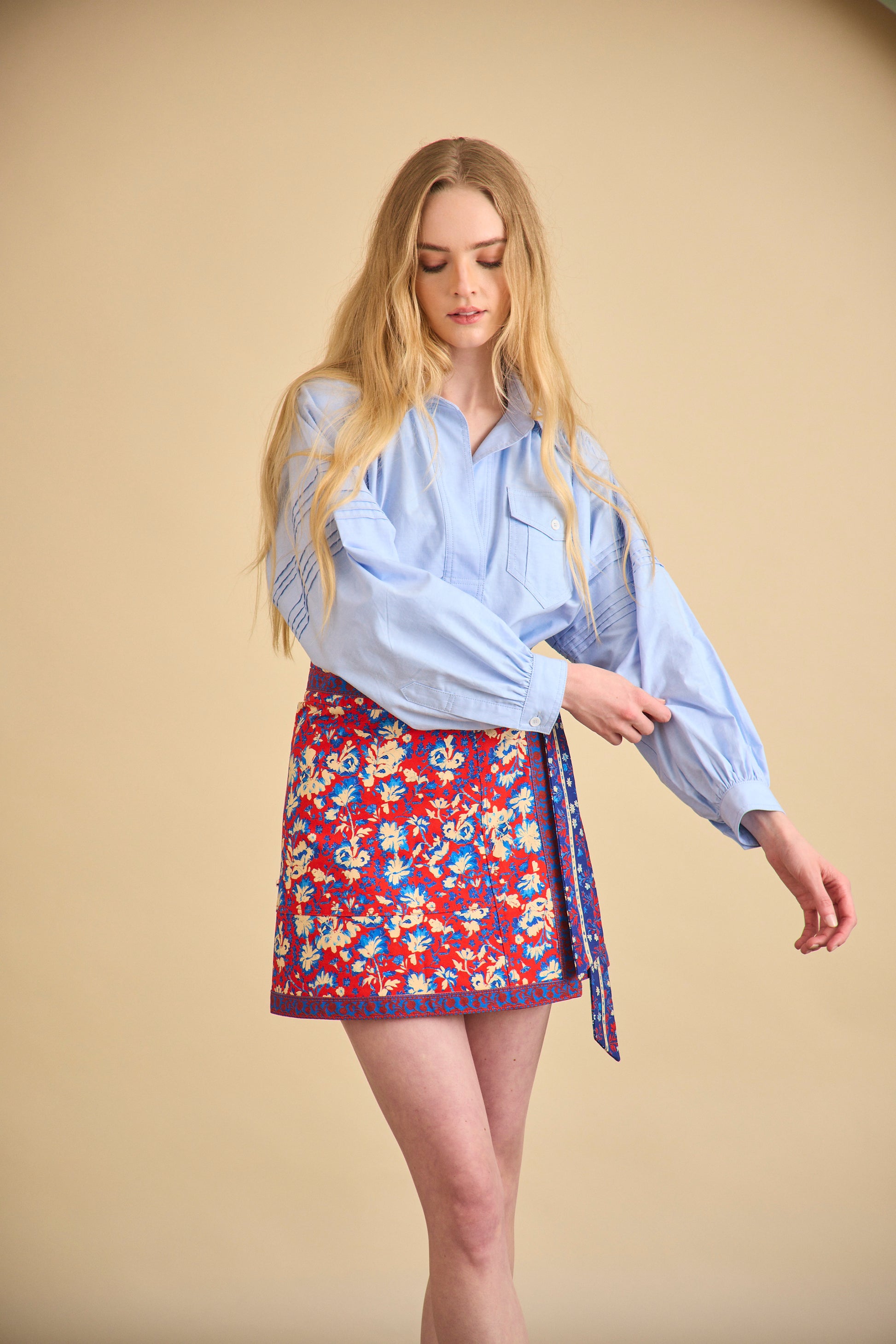 Back by popular demand and now in a fresh new print, the Bay Skirt is a standout favorite for good reason. This flattering wrap-style mini is crafted from structured cotton faille with a subtle textured weave that adds richness and dimension to our bold Tapestry Floral print. The all-over trim border adds a polished touch, striking that sweet spot between playful and sophisticated.