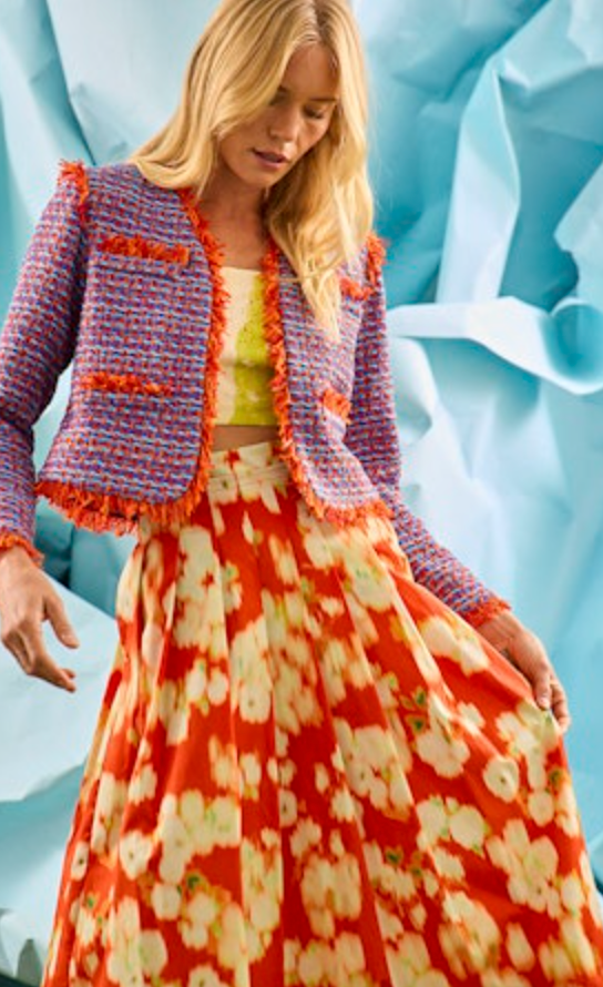 Our beloved Coco Jacket returns for Spring in Mariners Tweed, reimagined for our 20th anniversary collection. Crafted from a luxurious mid-weight French lurex tweed and finished with Italian cording, this season’s Coco blends timeless sophistication with modern ease. A relaxed, cropped silhouette, fringed edges, and novelty trim detailing complete the look - an iconic HB piece, refreshed for the milestone year.
