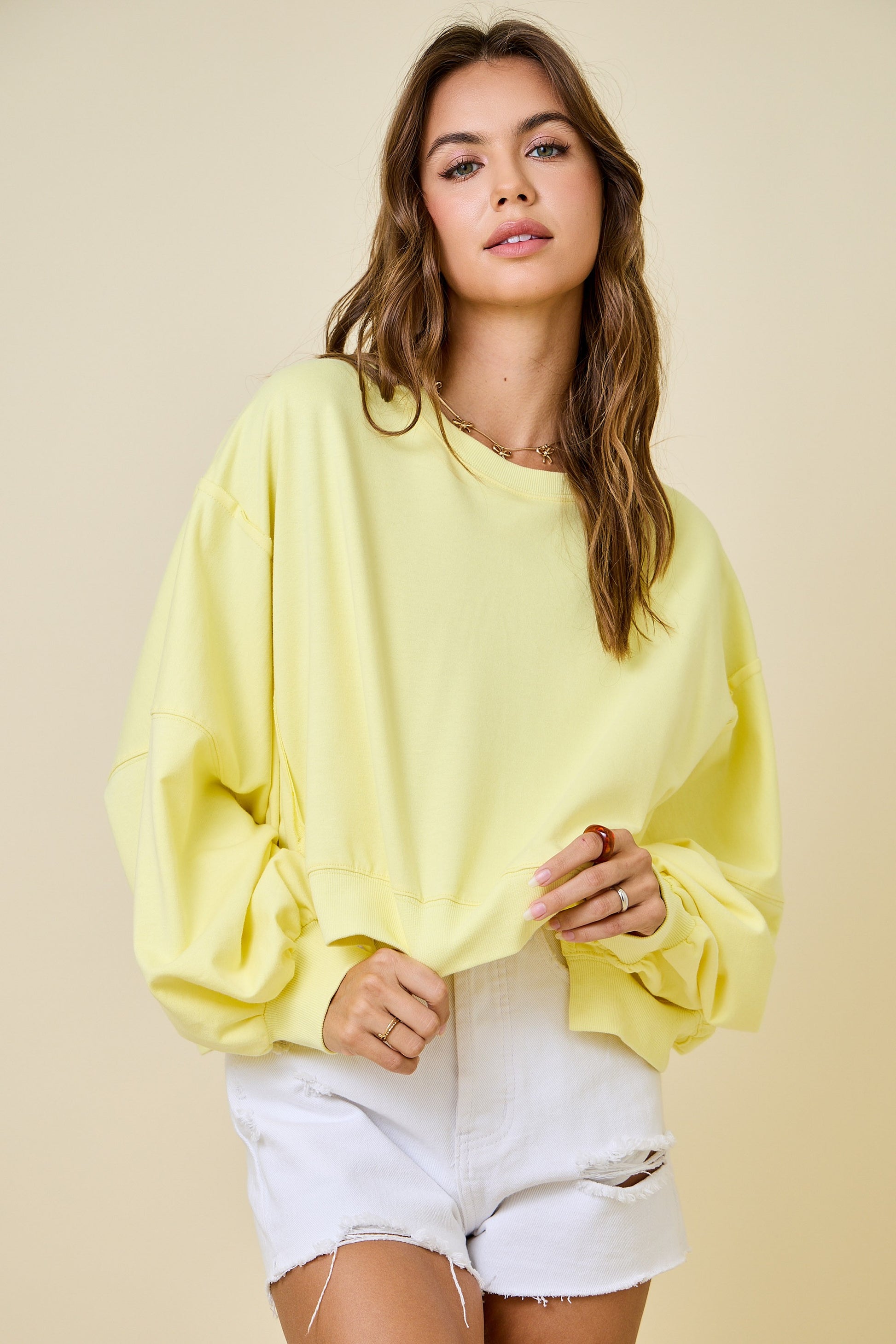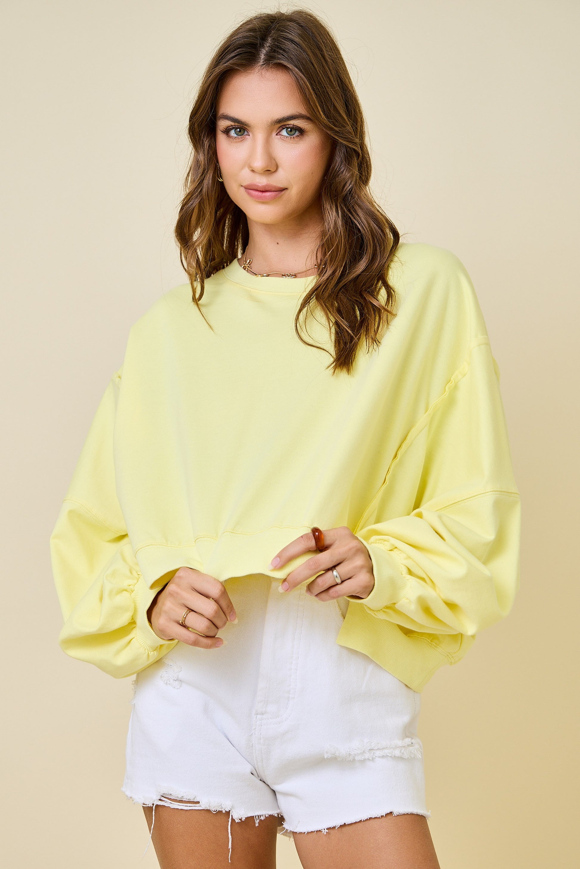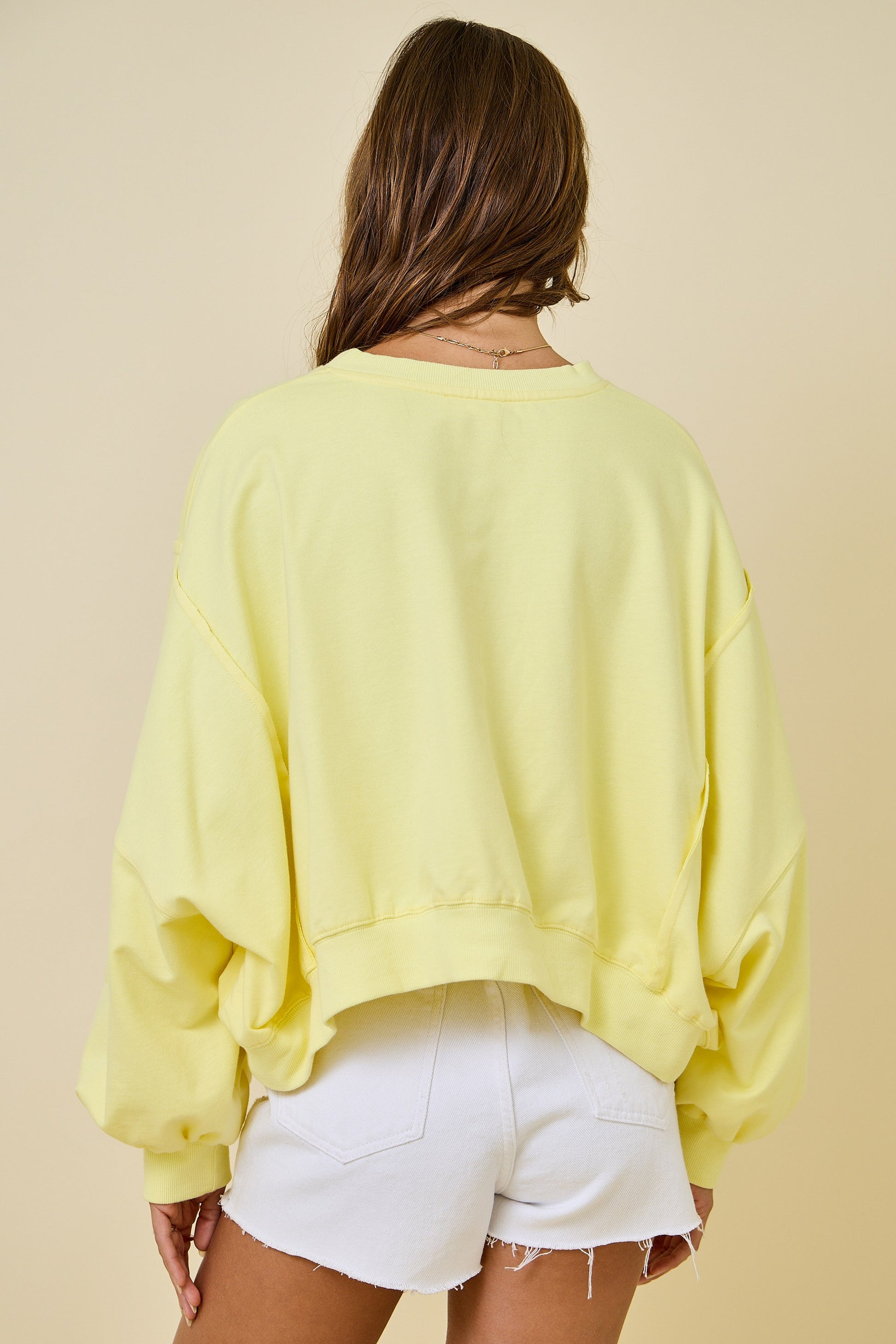 Cropped Crew Neck Sweatshirt - Lemon