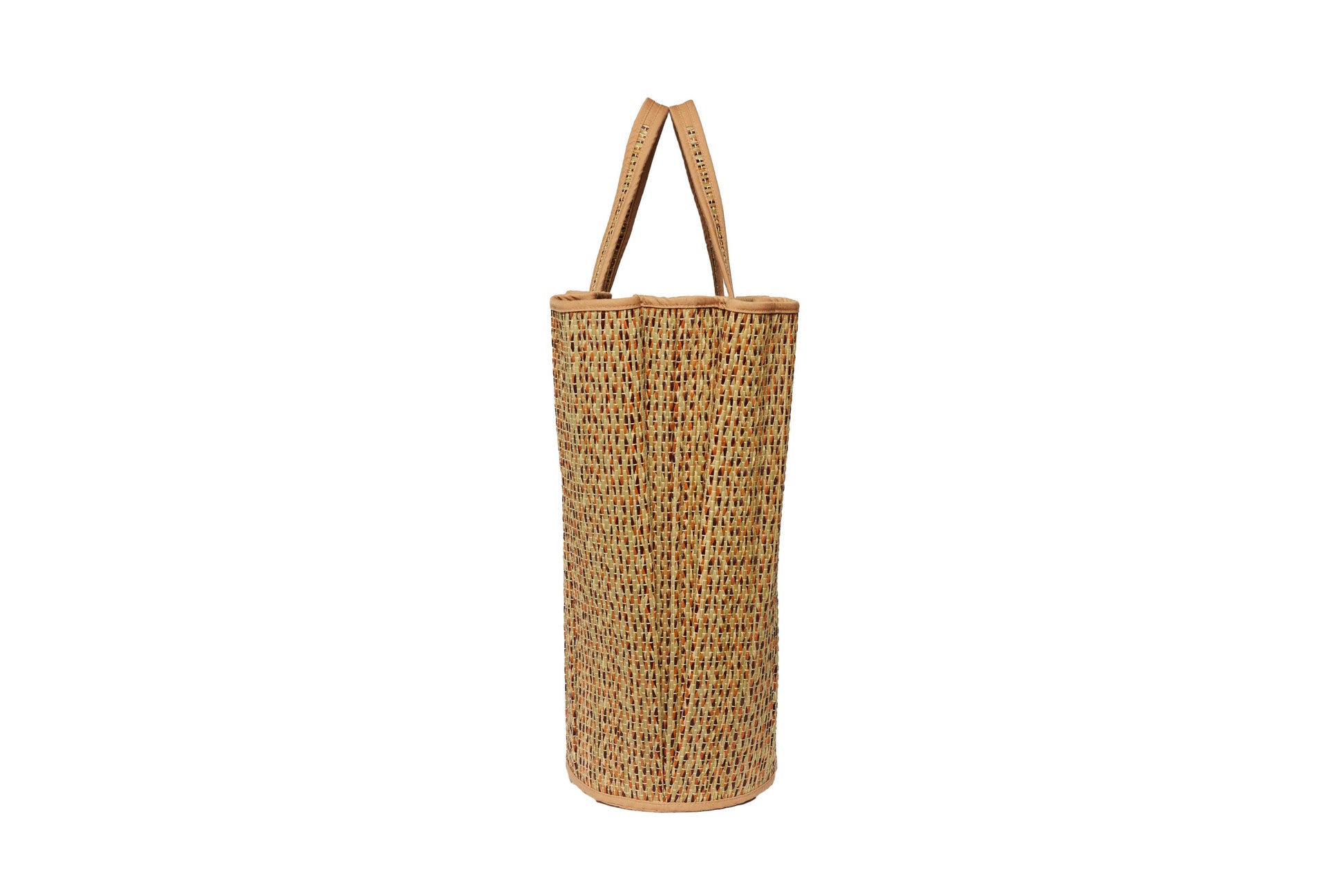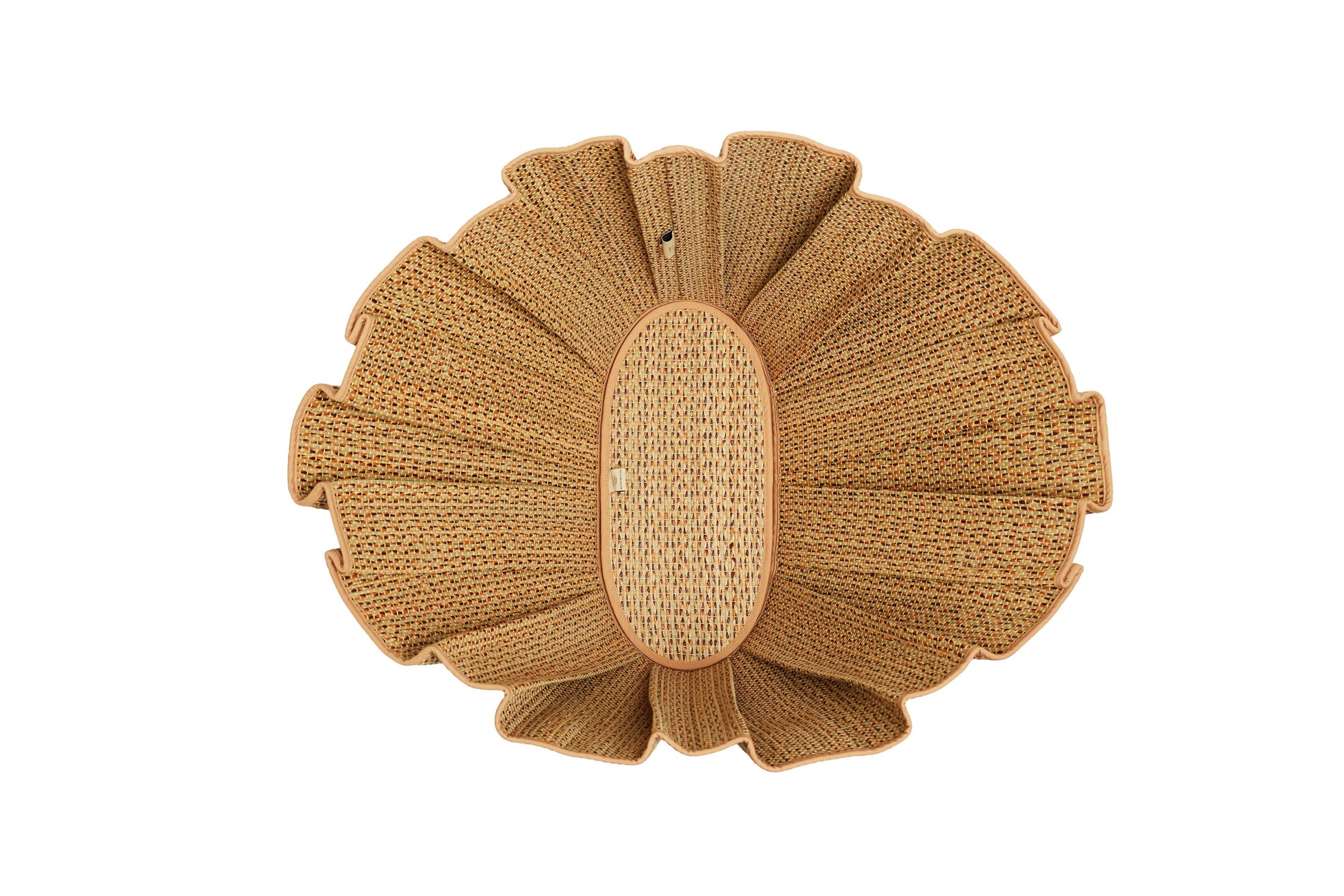 Dawn is created with chocolate brown, burnt orange and natural grass fibres woven with ebony black thread to form a luxuriously rich and textured weave. The neutral camel cotton fabric trim is the perfect combination of classic, fun glamour.