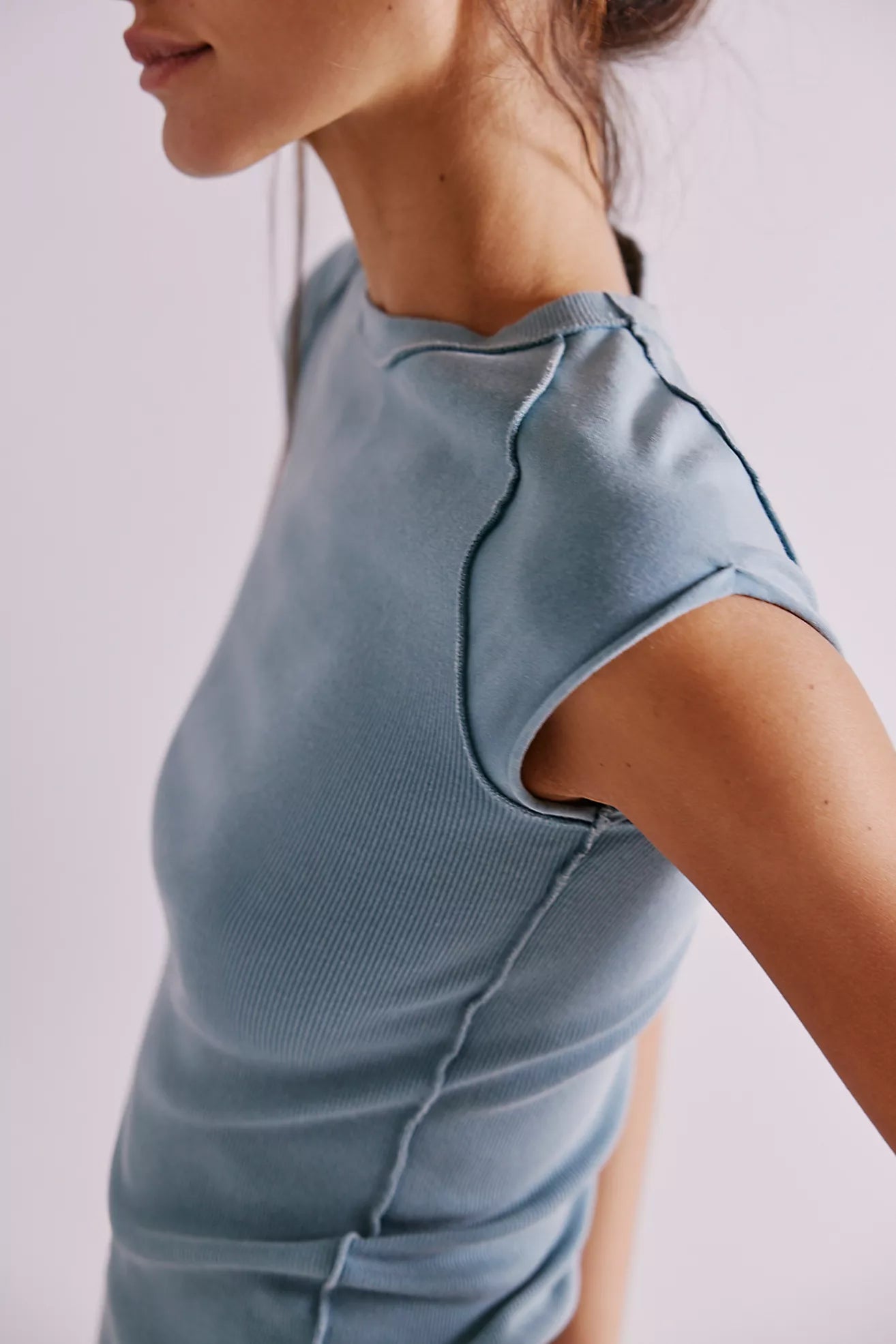 Your new favorite timeless tee from our We The Free collection, featured in a soft, ribbed knit fabrication and slim-fitting silhouette with raised seam detailing and cap-inspired sleeves.