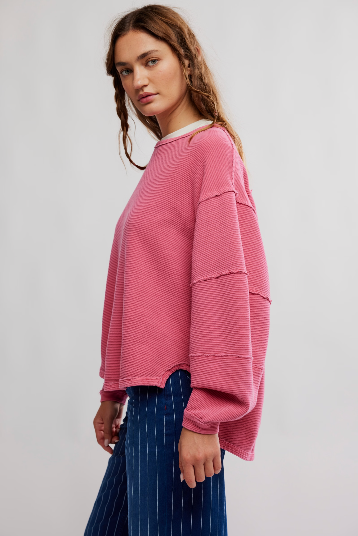 An elevated take on the classic tee, this long-sleeve from our We The Free collection features a ribbed fabrication and slouchy silhouette with defined seams and a scoop-neckline.
