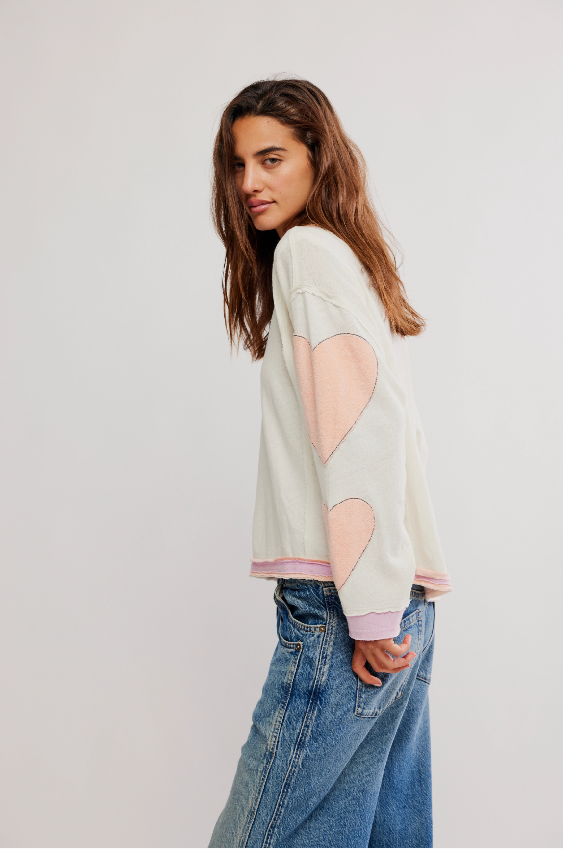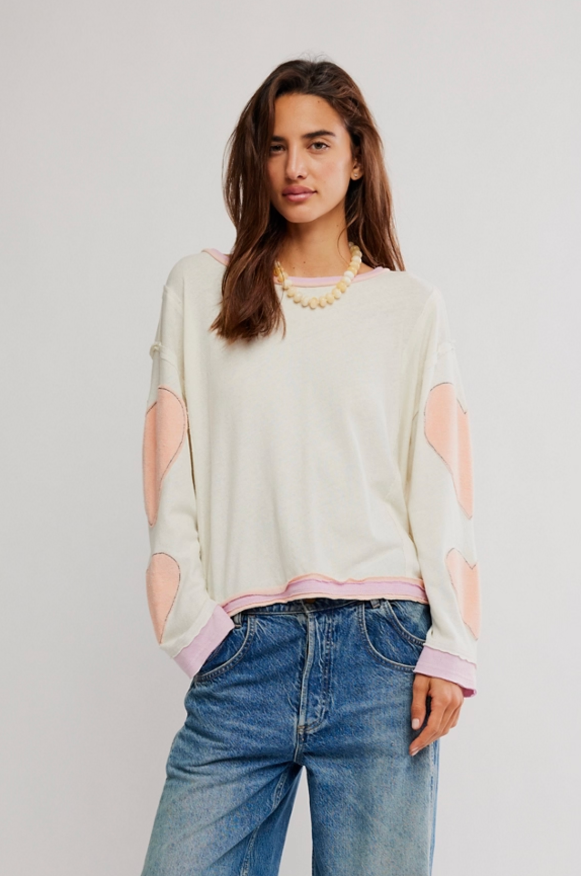 Free People You're A Star Long Sleeve Tee Shirt - Mint Heart Combo