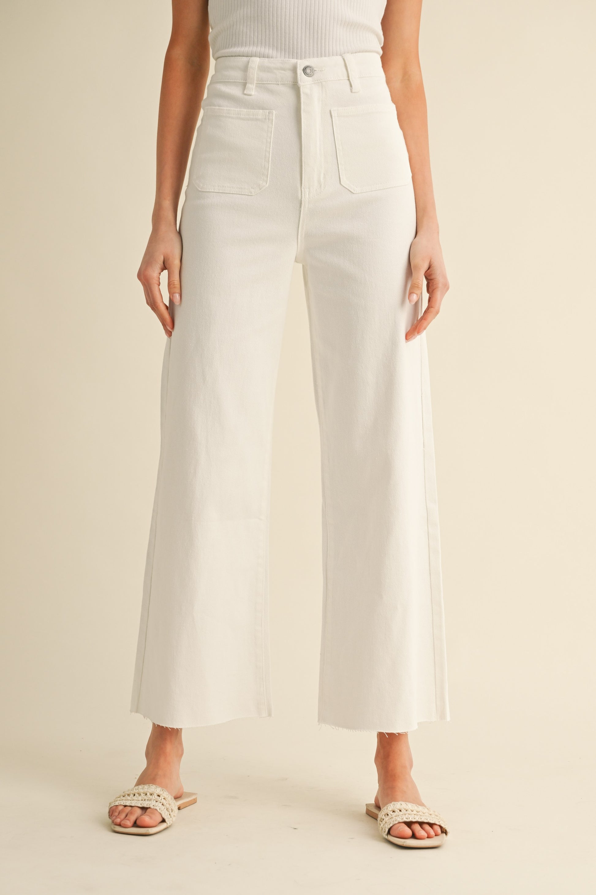 Front Two Pocket Stretch Wide Leg Denim Jeans - White