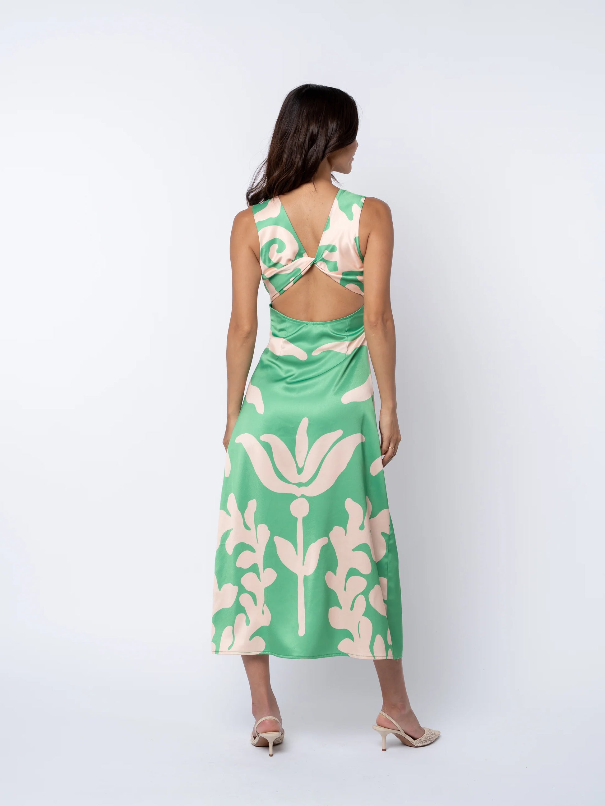 Penny Open Twist-Back Midi Dress - Green Multi