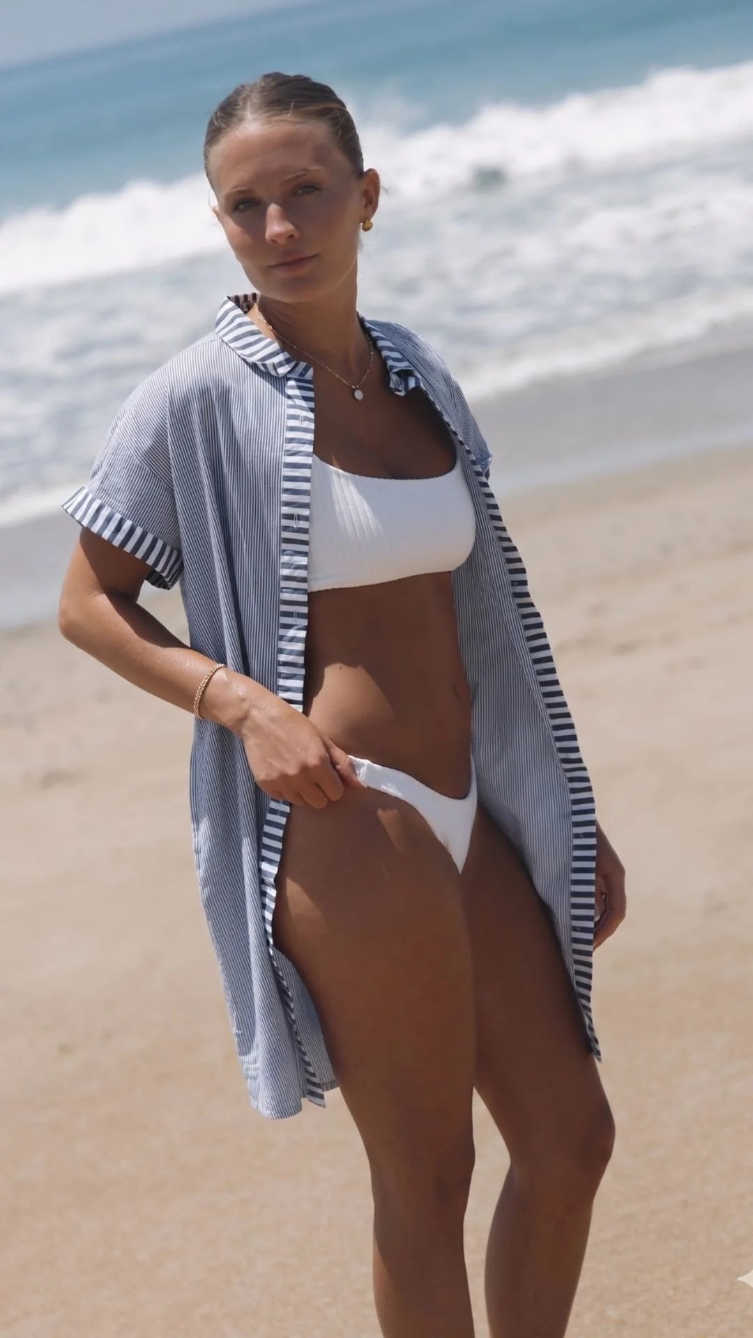 Wear it open and flowy for a relaxed look by the pool or buttoned up to knock around the beach club.