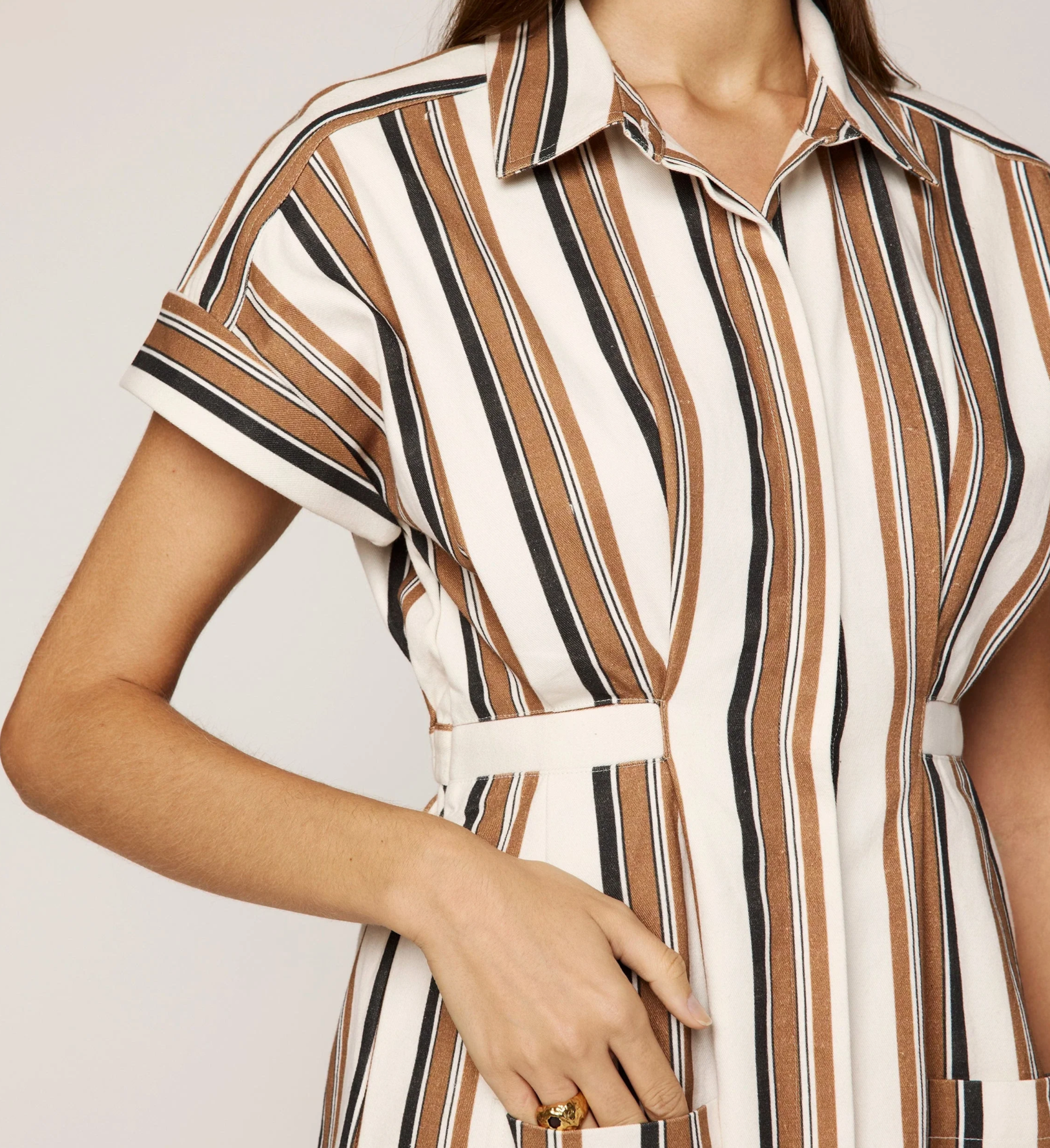 Handmade in India from 100% GOTS-certified organic cotton twill, the Sable Mini Dress is breathable, sustainable, and effortlessly chic. Featuring a button-down front, classic collar, front pockets, and an elastic back waistband, this versatile dress transitions seamlessly from day to night—perfect for warm-weather styling.