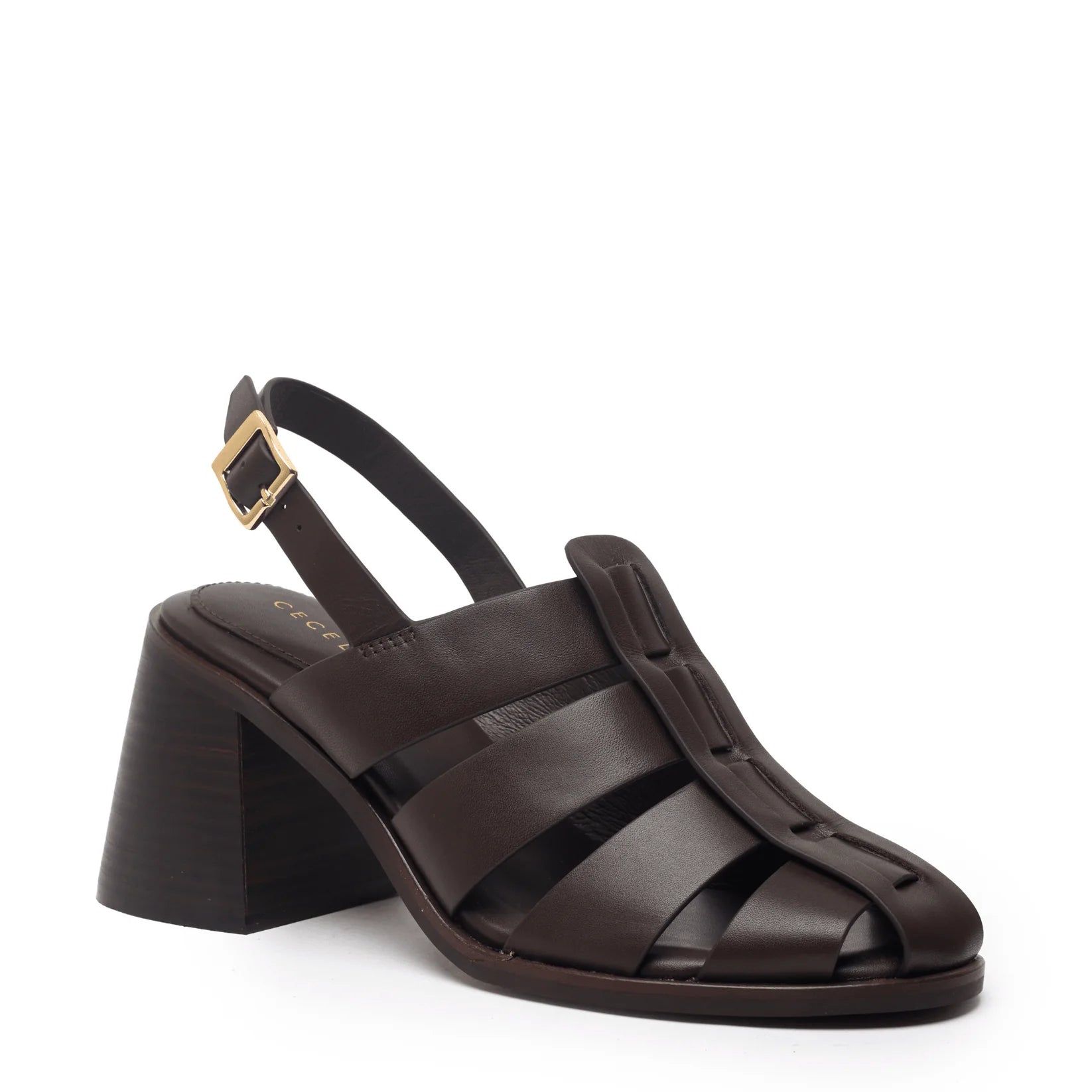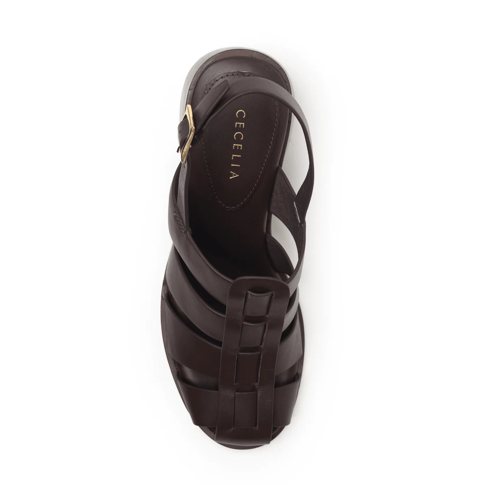 A fisherman-inspired silhouette adds timeless charm to a rich leather sandal set on a cushioned footbed and sculptural block heel