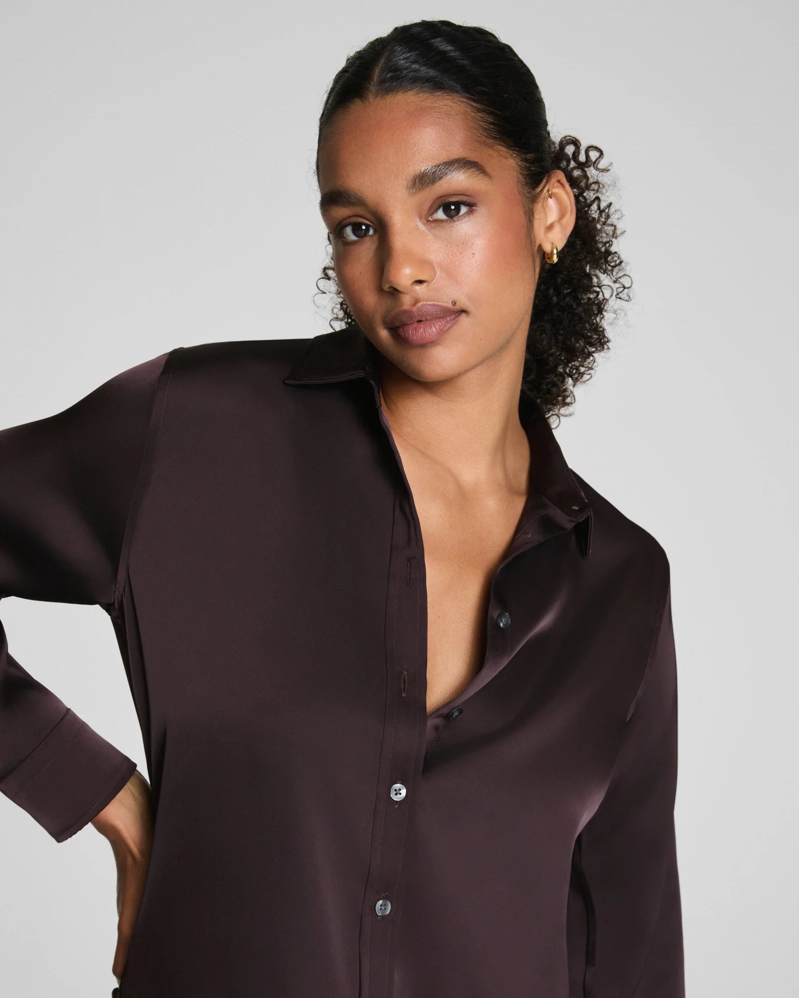 Spanx Silky Smooth Button Down Shirt - Truffle Brown