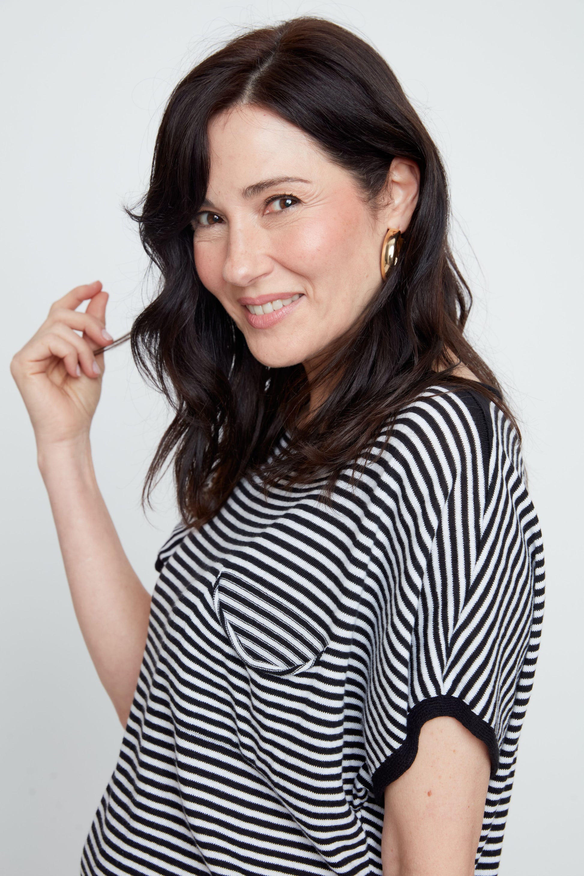 Cozy up in stripes with a side of sass. This lightweight sweater pairs classic black-and-white stripes with functional front pockets—because style shouldn't sacrifice practicality. Perfect for layering over tees or wearing solo, it's your new go-to for effortless, everyday charm. Soft, versatile, and undeniably cute.